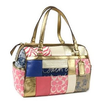 Authentic Coach Signature Patchwork Satchel Handbag 17164 Multi Pink/Blue